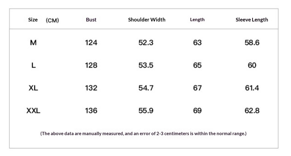 1. Asian sizes are 1 to 2 sizes smaller than European and American people. Choose the larger size if your size between two sizes. Please allow 2-3cm differences due to manual measurement. 2. Please check the size chart carefully before you buy the item, if you don't know how to choose size, please contact our customer service. 3.As you know, the different computers display colors differently, the color of the actual item may vary slightly from the following images.